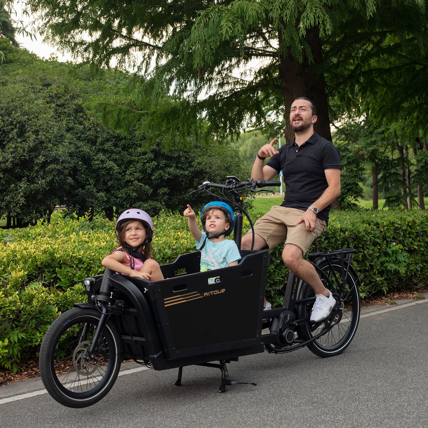 Entdecken Sie eine aufregende neue Art, die Stadt mit Ihrer Familie oder Fracht auf dem Aitour Cargo Bike – Basalt zu erkunden. Dank der einfachen Bedienung, der einfachen Handhabung, der überlegenen Bremskraft und der schlanken Silhouette können Sie unbesorgt cruisen. Übernimm das Steuer und entdecke eine neue Welt voller Abenteuer!