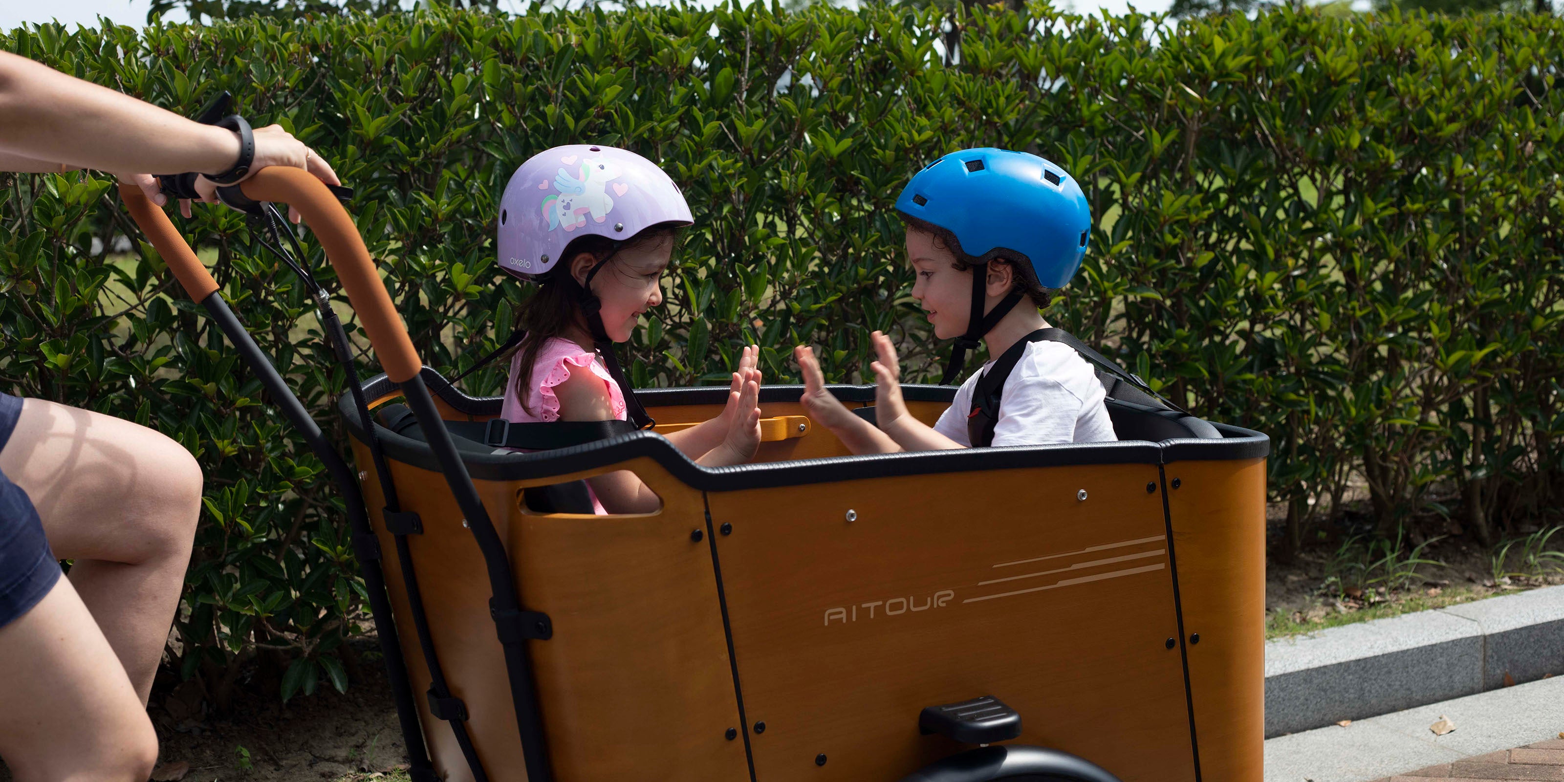 Aitour Cargo Bike - Family C is equipped with a child safety belt, soft leather cushion, safety armrest, and anti-slip mat. You can also choose to add the accessories you need.