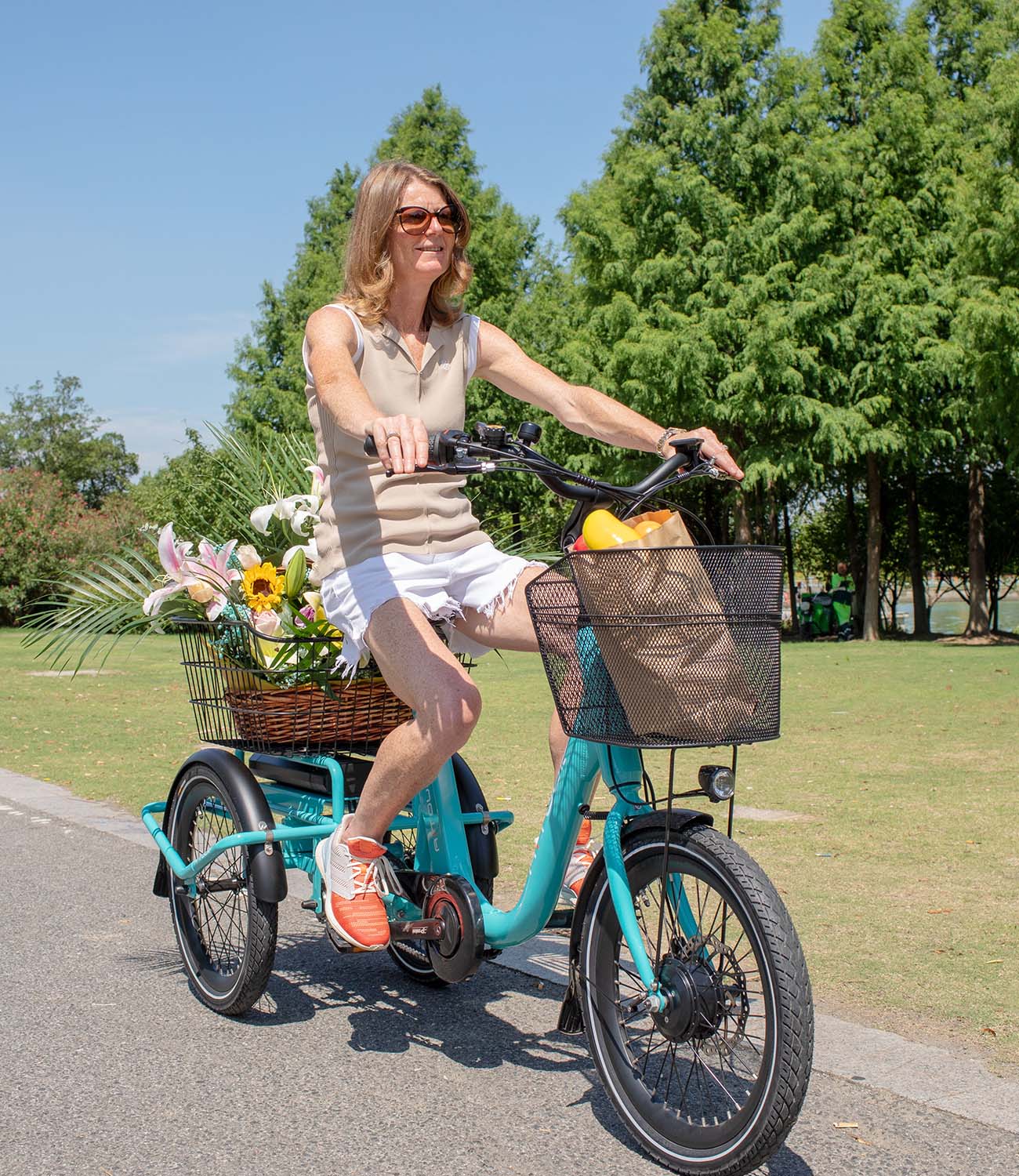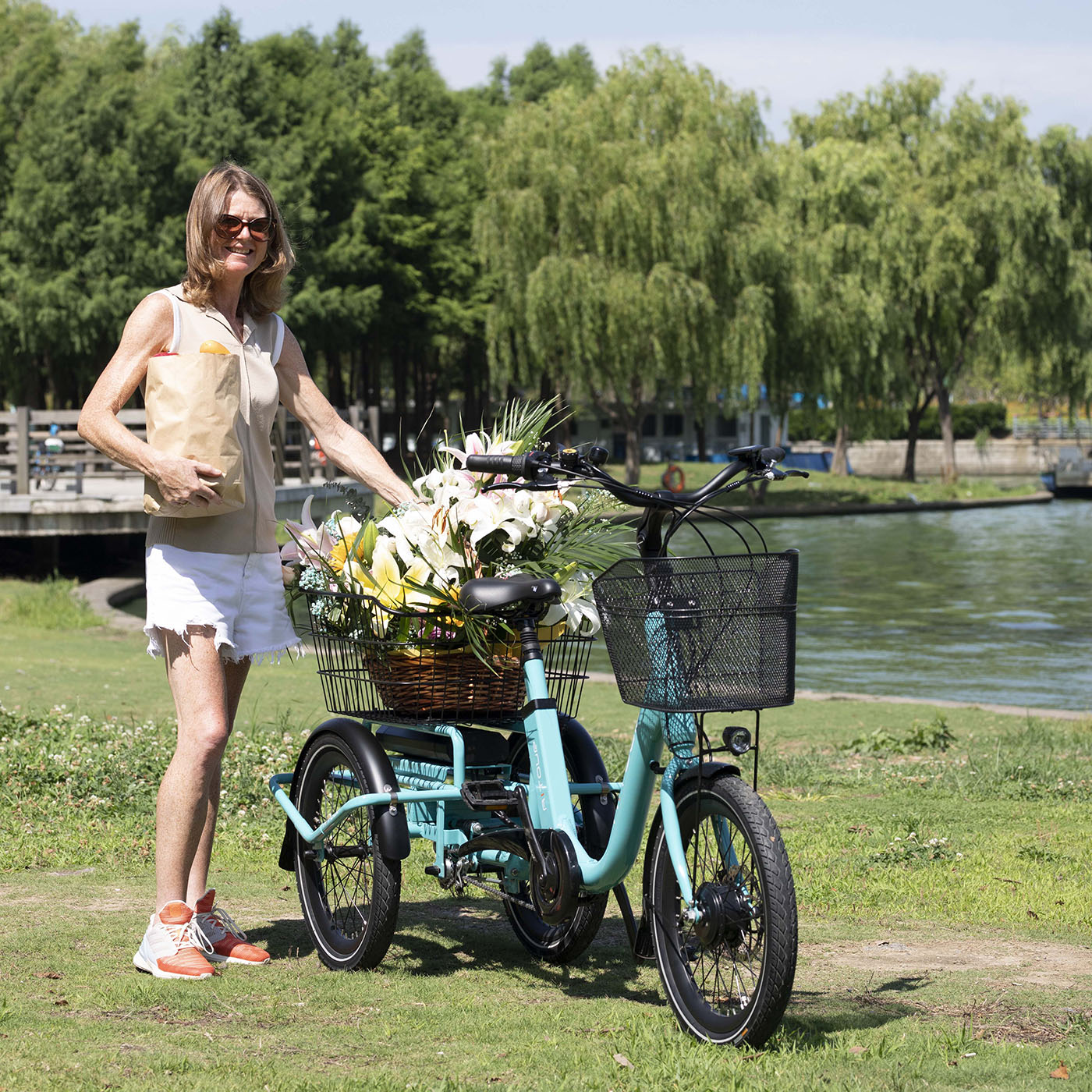 Aitour Electric Trike - Heal Mini, is a low-carbon electric trike that makes your lifestyle healthy. With a stylish design, three-speed shifting, safe parking, and up to 65km+/40+ miles of riding on a single charge, exercise, and riding are no longer a chore. All of its accessories are within safety standards to ensure that every trip you take is safe. The 20-inch wheel size may be better for older or less confident novices, as the lower height makes it easier to get on and off the e-trike.