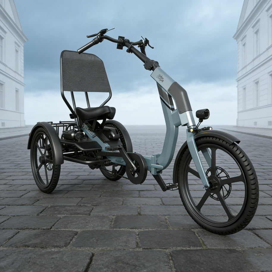 A lightweight semi-recumbent tricycle for seniors, leisure riders, and short-distance commuters. Its low body height, ergonomic seating, and easy handling ensure comfort, stable and confident ride.